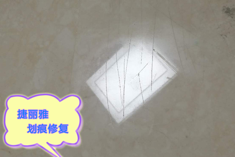 第二、中度劃痕:燈光下陽光下一眼就能看出來,因為劃痕的地方?jīng)]有反光,用指甲滑動明顯有阻礙。修復(fù)流程:先用專業(yè)的磨片把劃痕處銳利的周邊磨平滑,然后涂上免燒釉修復(fù)劑,配合手持拋光機進行柔拋,每一次2分鐘左右,在拋光過程中會產(chǎn)生熱量,熱量與修復(fù)劑反應(yīng)形成釉面,每涂一次,拋一次,就會形成一層釉面,一般三遍左右,就能完全修復(fù),把劃痕凹陷處填平了,由于是高溫形成的釉面,所以劃痕處的釉層能夠與磚面牢固結(jié)合,耐水擦洗,超高亮度,堅硬耐磨,你自己都很難發(fā)現(xiàn)原來的劃痕在哪里。這樣的效果您滿意嗎?